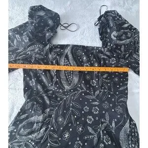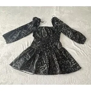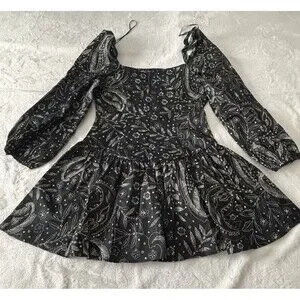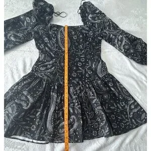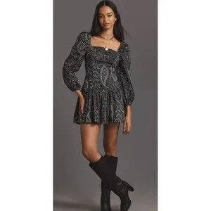 Anthropologie Maeve Long Sleeve Square Neck Drop Waist Mini Dress Black Motif