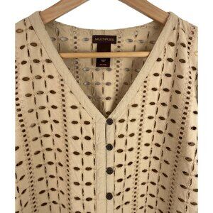 Multiples Brown Button Up 3/4 Sleeve Open Knit Eyelet Cardigan Womens SIze Large