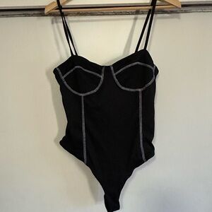 Just Polly New York Black & White Tank Bodysuit Size L NWT