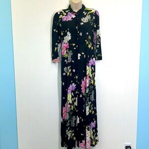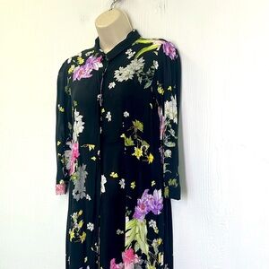 Zara - Black Colorful Floral Button Down Lightweight Long Sleeve Maxi Dress SZ S