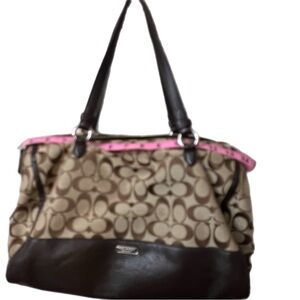 Stylish Coach D1473-F31921 khaki/Brown Signature canvas leather-Trimmed Park Satchel TLC.With out shoulder strap.Perfect for everyday use.In good condition