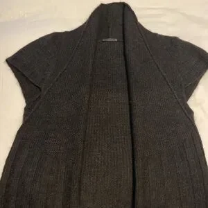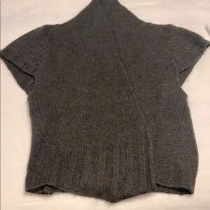 This elegant gray sweater vest features a sophisticated ribbed texture and a high neckline, offering a chic and cozy look. Its A-line shape provides a flattering fit, making it a versatile addition to any wardrobe. Perfect for layering, this sweater combines style and comfort effortlessly.