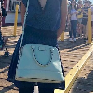 Elegant Kate Spade handbag in a sophisticated mint color. Perfect for any occasion, this leather bag combines style and functionality. A couple of scuffs as shown in pics. True color shown in last 2 pictures during daylight. EUC. ~Xposted.