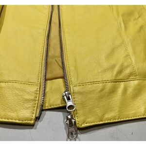Sunny Yellow 100% Leather Moto Jacket Full Zip Jessica London Womens 16/16W XL