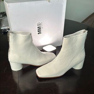 Step out in style with these MM6 Maison Martin Margiela ankle boots. Crafted in a sleek white, they offer a chic and modern look. Perfect for any occasion. Unworn.
