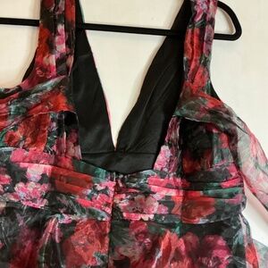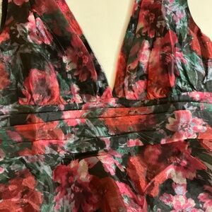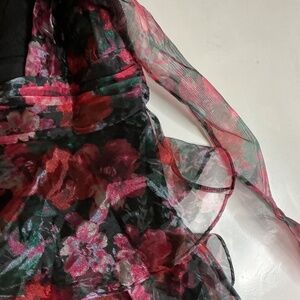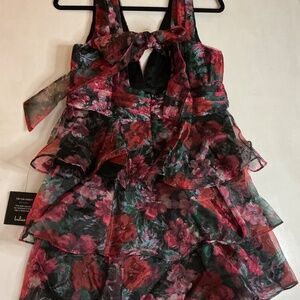 LuLu’s NWT black floral tiered mini dress tie back size Lg