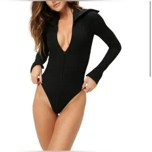 Good American Long Sleeve Funnel Neck Rib Bodysuit. Size 2. No flaws. In great condition! Comes from a pet free and smoke free home.