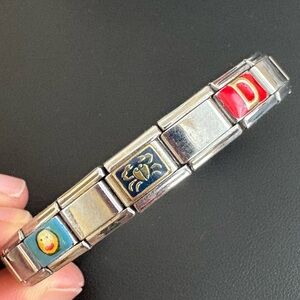 Vintage Italian Link charm bracelet stainless steel cancer crab zodiac sign y2K