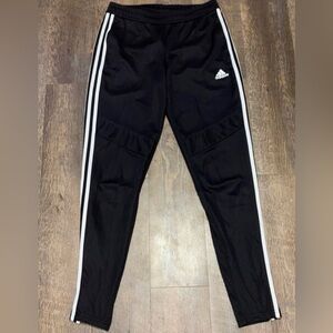 Comfortable and stylish black track pants by Adidas. Perfect for active days. Zipper near the ankle!