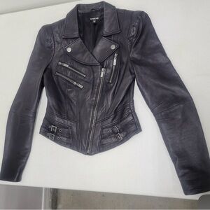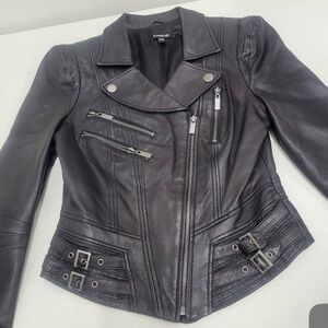 Bebe leather black jacket, size Small, soft 100% real leather shoulder pad