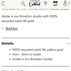 Catbird X Cassi Namoda Painter’s Gold Stacking Ring 14k Yellow Gold Size 6