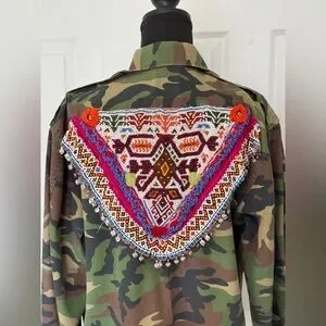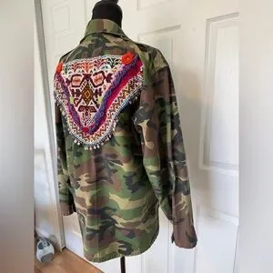 Free People Tricia Fix Camo with Colorful Embroidered Back