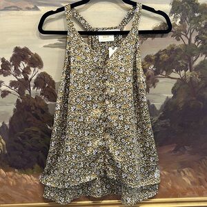 NWT / Button Front Tank Top with Beautiful small hints of purple floral patterned in mustard and white. Great for Summer or Fall .