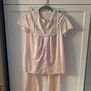Vintage pale peach pajama set. No tags but fits like a size small (6-8?). See waistband photo-needs slight sewing repair.