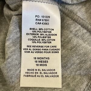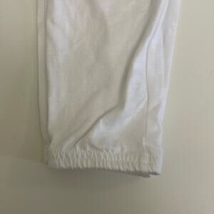 White pants have elastic at waist and bottom of legs. Banded cuff on grey long sleeve shirt