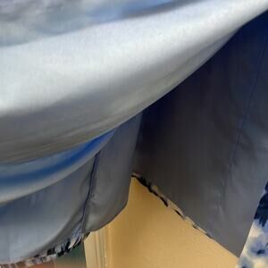 Maxi skirt with side split. Fully lined. Beautiful blue pattern. Back zipper. Lightweight. Great piece for spring. Wear with strappy sandals or an elegant heel. Flat pleats in front are very figure flattering.
