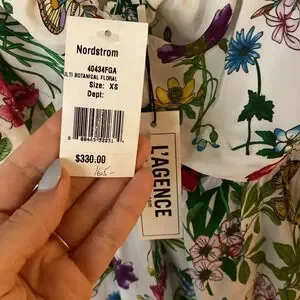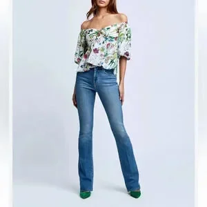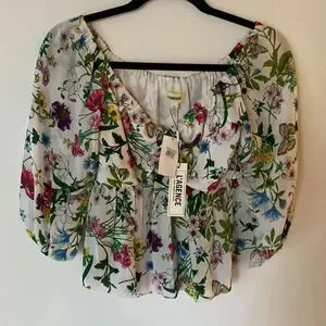 L'agence Elena Off-The-Shoulder 100% Silk Blouse White Multi Botanical Floral XS NWT