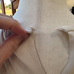 This top has a layered look and is mostly silk (96%). it's comfortable and light. Excellent condition. This was worn once, maybe. This comes from my own closet, smoke and pet free home. The button in the back could use some reinforcing.