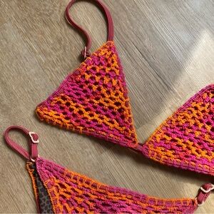 Free People x Acacia Lisboa Crochet bikini Top & Bottom large top XLarge bottom