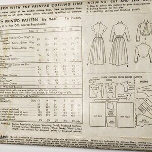 An original 1950s true vintage fitted full skirted dress sewing pattern with a spread collar and short sleeve dress with a short cropped bolero jacket.