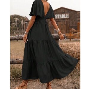 Boho Rust V neck Butterfly Sleeve Stretchy Waist Maxi Dress