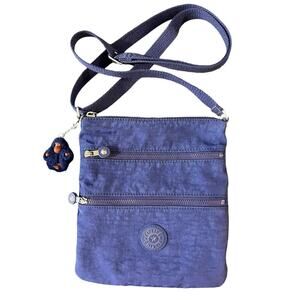 Kipling Blue Navy Nylon Messenger Crossbody Bag with Andy Gorilla Keychain