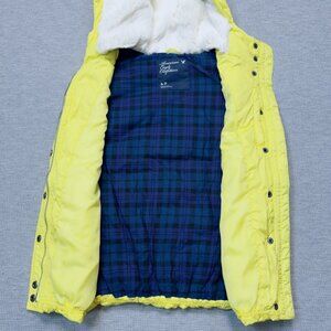 American Eagle Womens Yellow Puffer Vest Faux Fur Hooded Zip Pockets Size Small