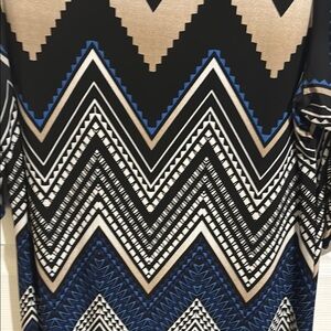 Stylish chevron patterned dress featuring black and blue tones. Perfect for any occasion. Lightweight. Size Medium