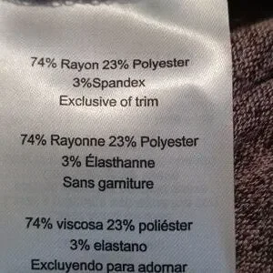 74% rayon / 23% polyester / 3% spandex