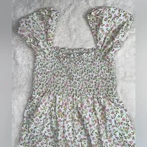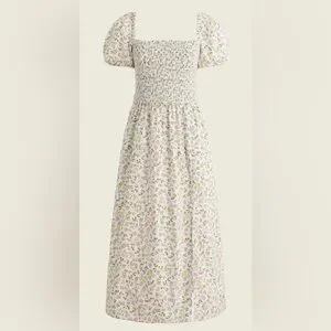 J. Crew Cottagecore 100%Cotton Short-sleeve smocked dress in meadow floral Sz XL