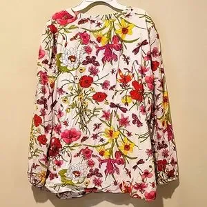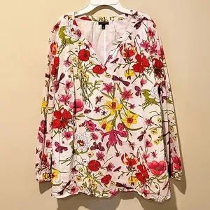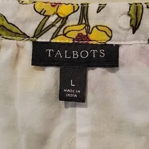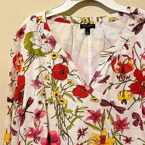 ❤️ TALBOTS COTTON FLORAL DRAGONFLY PRINT SPLIT NECK TOP, LARGE