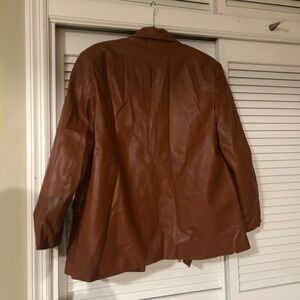 Stylish brown faux leather blazer by Zara. Perfect for a chic look.