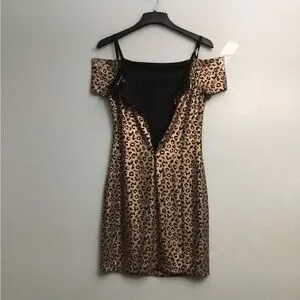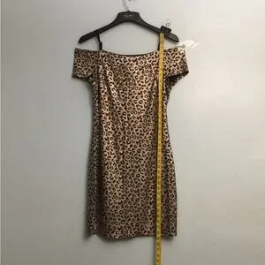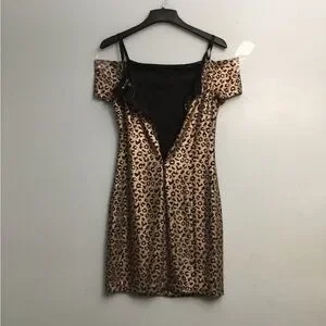 Elevate your evening look with this chic tan mini dress from Fashion Nova, perfect for a night out. The bodycon silhouette accentuates your figure, while the off-the-shoulder neckline adds a sophisticated touch. Ideal for cocktail events, this sleeveless dress is a stylish addition to your wardrobe. This dress is brand new it was never worn. The measurements are in the pics