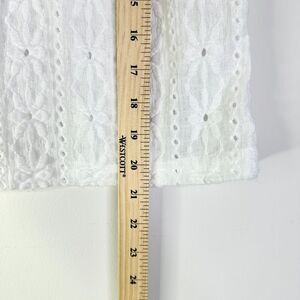 This is such a cute set! White crochet with black trim and little black bows. Top is cropped length with flutter sleeves, bottoms are elastic waist relaxed fit. New without tags, showing no signs of wear or defects. Size XL.