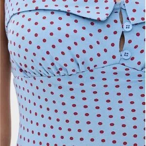 Never worn, new with tags. Chic and stylish, this blue polka dot dress is perfect for any occasion. The elegant design offers a flattering fit, making it a must-have in your wardrobe.