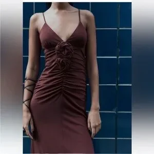 ZARA TEXTURED FLORAL MIDI DRESS