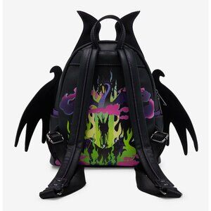 Add some villainous style to your wardrobe with this Sleeping Beauty-inspired mini backpack! With applique Maleficent wings and horns, the front of this bag also includes debossed details. With a zippered front pocket, a back portrait of Maleficent among flames, and adjustable straps, this backpack is perfect for carrying your essentials in Disney style.