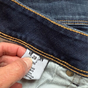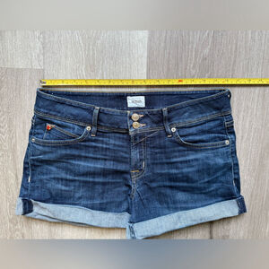 Experience the timeless appeal of Hudson Jeans' blue jean shorts, crafted in a classic style with a comfortable fit. These shorts feature a rich blue hue, perfect for casual outings or relaxed weekends. Enjoy the quality and style synonymous with Hudson Jeans. Good condition.