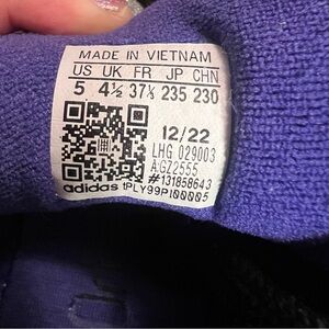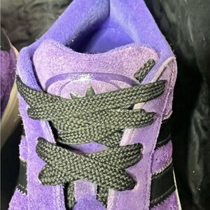 Step out in style with these Adidas women's sneakers. Featuring a vibrant purple suede design and classic black accents, these shoes offer both comfort and fashion. Perfect for any casual outing. Some wear and tear & fading see photos. Lots of life left in these shoes! No original box.