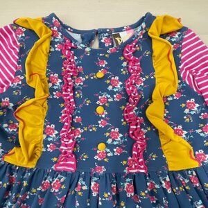 Banana Split Girl's Size 8 Dress Multi Fabric Ruffles Long Sleeve 100% Cotton