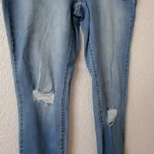 Blue color, Curvy skinny leg jeans, mid rise tummy control, curvy fit.