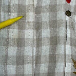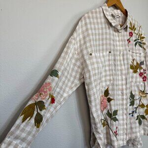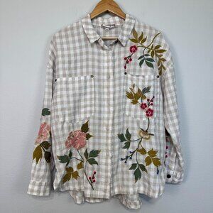 Johnny Was Workshop Adele Gingham Women's Overshirt Linen Embroidered Size Small