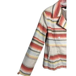 Gorgeous Tommy Hilfiger Fitted Double Breasted Notch Lapel Blazer in an Ivory Multicolor (Cream, Orange, Olive, Butter Yellow, Baby Blue, Pink, Citrine, Dove Gray and Blue) Jacket.