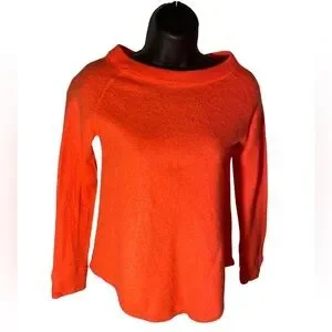 This is a 100% cashmere sweater by Philosophy. The cowl accentuates the collar bones and the orange color with pink undertones will add that beautiful flush to your cheeks. Go by the measurements