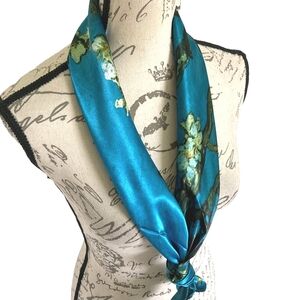 Womens boho blue floral Multicolor Square satin lightweight cute oversized bandana hair head or neck scarf, new no tags