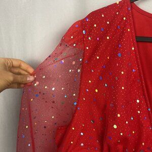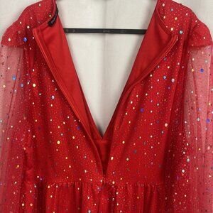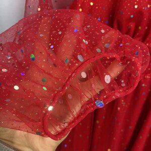 Make a dazzling statement in the Double Crazy Puff Sleeve Ruched Waist Sheer Mesh Overlay Dress, designed to bring bold, confident elegance to any event. This eye-catching dress, in a rich red hue, features a flattering ruched waist and a sheer mesh overlay adorned with sparkling details, perfect for making you stand out in the crowd. The voluminous puff sleeves add a whimsical touch, while the deep V-neckline creates a flattering, sophisticated silhouette.