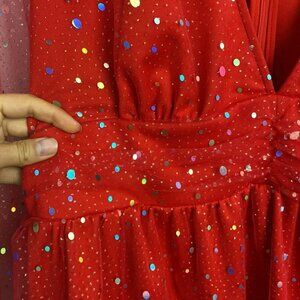 Whether you're attending a party or a special occasion, this dress offers a stunning balance of playful and glamorous.