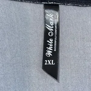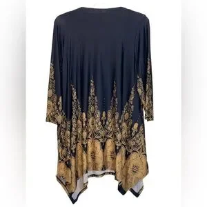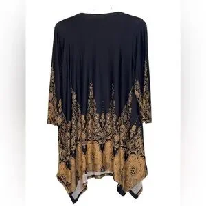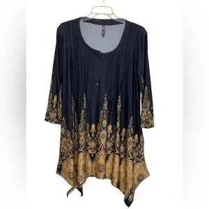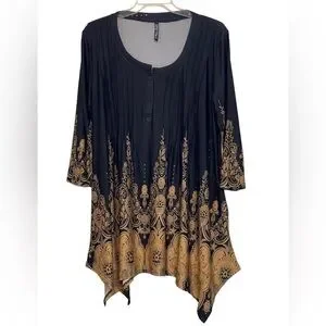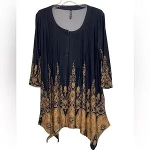White Mark black Scroll, 3/4” sleeve, handkerchief hem top. Worn once EUC Size 2 XL