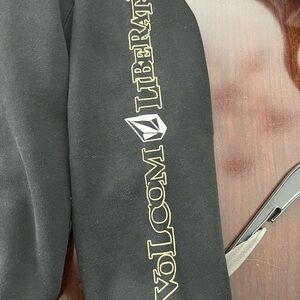 Volcom Black/Tan Pullover hoodie sweatshirt. Volcom Liberation in sleeve. Volcom stitched lettering on the front. Size Small