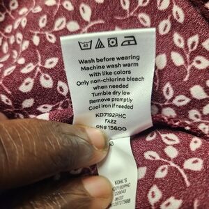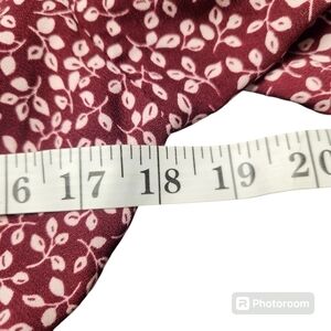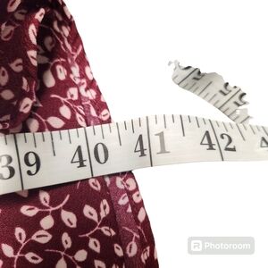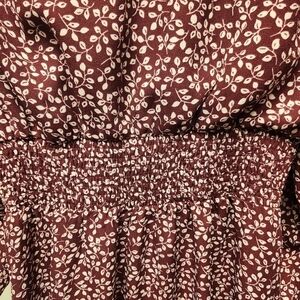 Draper James RSVP Burgundy/White Ditsy Print Smocked Waist Aline Dress Size: Medium V-Neck Surplice Neckline Stretch Smocked Waist Pull Over Style Side Seam Pockets Bodice Lined Long Sleeves with Elastic Cuffs Ditsy Leaf Print Stock Photo to show style only; color is different.